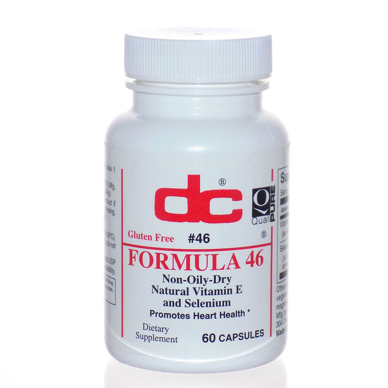 Dee Cee Labs Formula 46 contains 400 IU of vitamin E per capsule. Vitamin E is an that is easily obtained from sunflower, safflower, canola, and olive oils; also from many grains, nuts, fruits as well as fatty parts of meats.