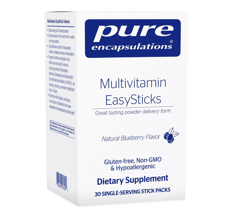 Pure Encapsulations Multivitamin EasySticks provide a multivitamin/mineral formula in a unique, great-tasting, direct-to-mouth powder delivery form. This once-daily formula supports optimal health with a comprehensive profile of bioavailable vitamins, chelated minerals and antioxidants,